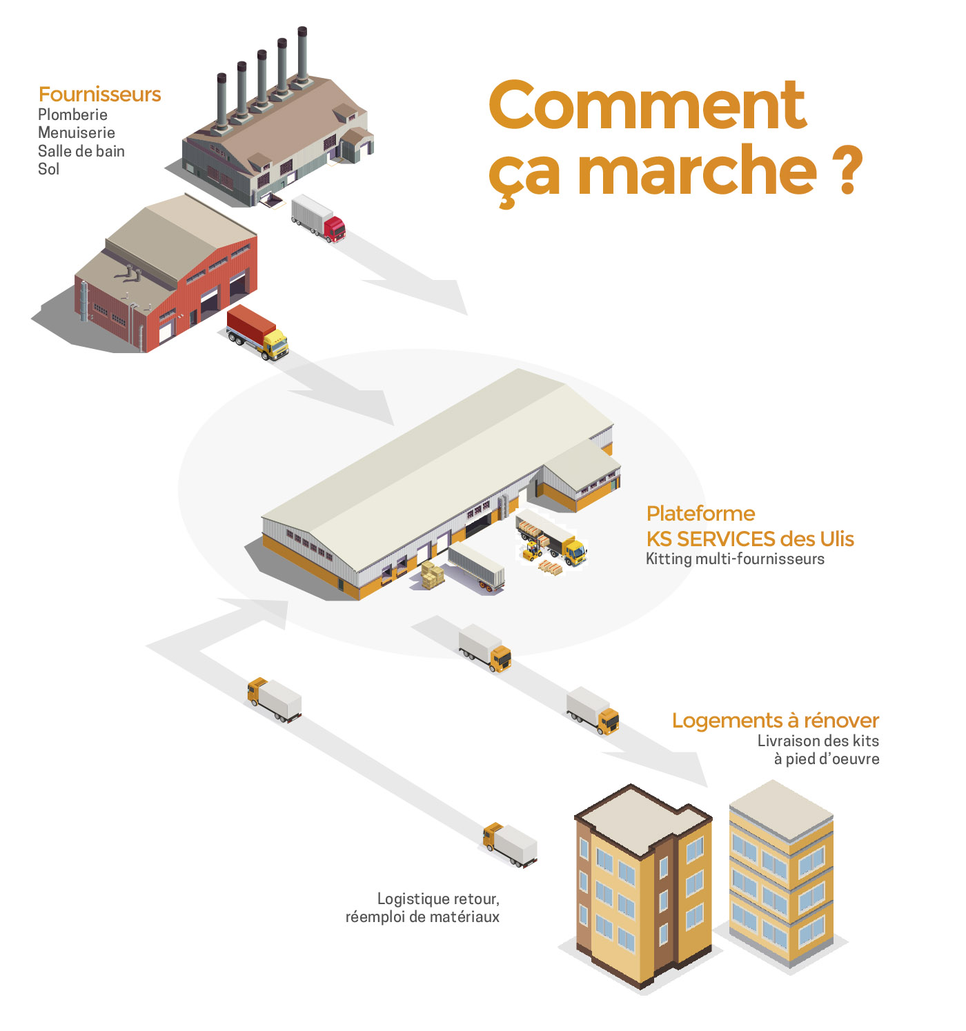 Dans le cadre d’un service innovant de préparation et livraison de « kits habitation » (plomberie, menuiserie, sols) pour les entreprises de BTP développé par KS SERVICES, les équipes de Logistique Industrielle / Distribution Ile-de-France et Hauts-de-France et les équipes de KS SERVICES BTP (Logistique de Chantier) s’allient pour plus de perfomance !