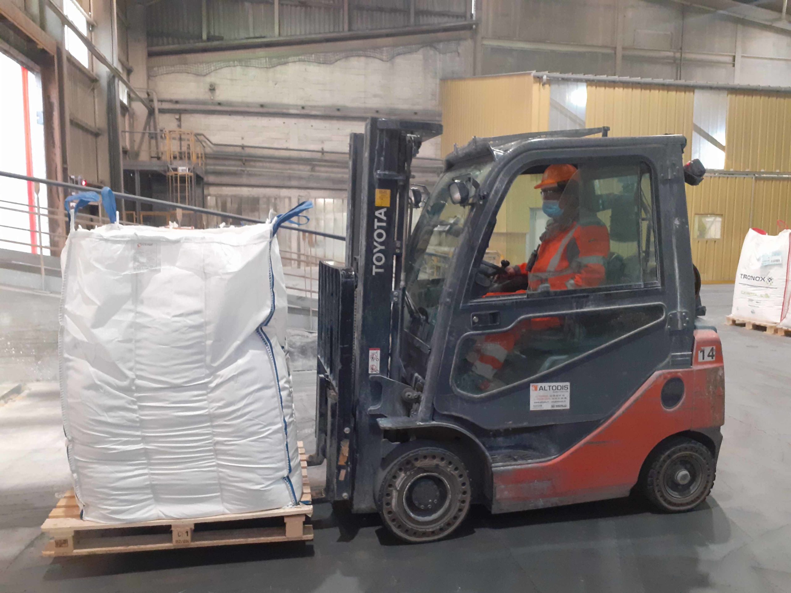 La mission de KS SERVICES : conditionner le dioxyde de titane puis l’expédier soit en vrac dans des citernes sous forme de chlorosulfate, soit en palettes de sacs ou en big-bags chargés dans des camions. Nous conditionnons ainsi jusqu’à 100 tonnes par jour. Pour atteindre les objectifs du Client et assurer sa satisfaction, une dizaine de logisticiens (Chef d’équipe, Conditionneurs et Caristes) opèrent sur le site.