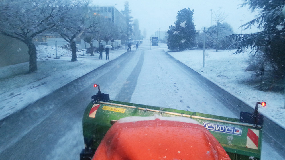 Il y a 7 ans, la direction des services généraux de la SNECMA demande à KS SERVICES de prendre en charge une prestation « déneigement » sur le site de Villaroche comptant 6500 personnes et s’étendant sur 90 hectares et près de 200 000 m2 batis. Cette prestation consiste alors à « traiter » (salages préventifs et/ou déneigement…) toutes les surfaces bitumées y compris les parking situés en dehors du site avec comme objectif un ZÉRO accident humain ou matériel suite à glissade.